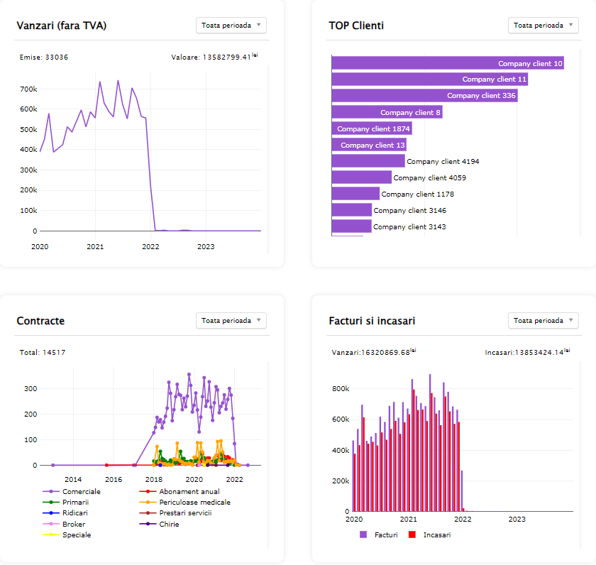 Vizualizezi și gestionezi în timp real toate informațiile despre clienții tăi, dar și despre situația financiară.